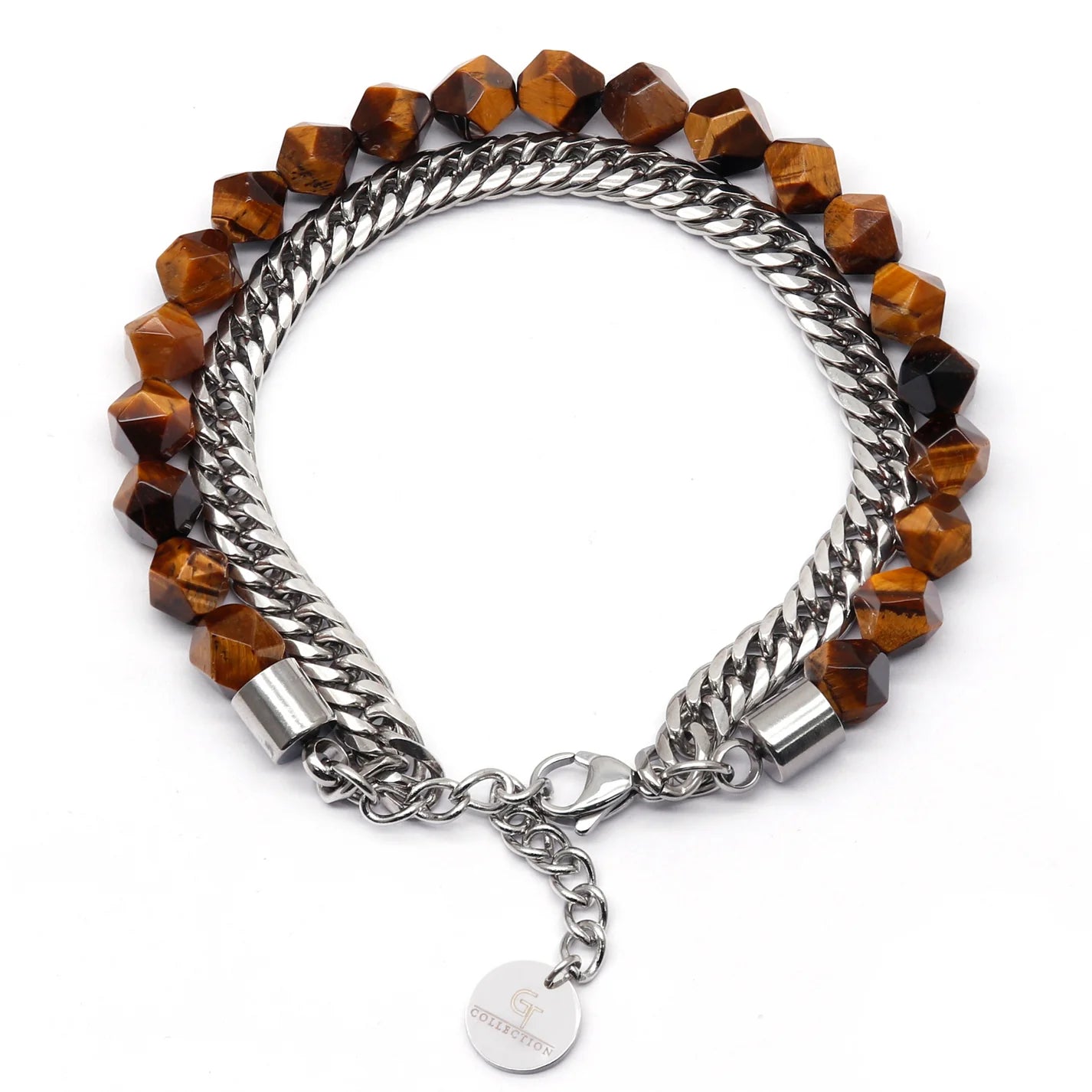 GT collection - moška fasetirana zapestnica iz perl rjavega tigrovega očesa