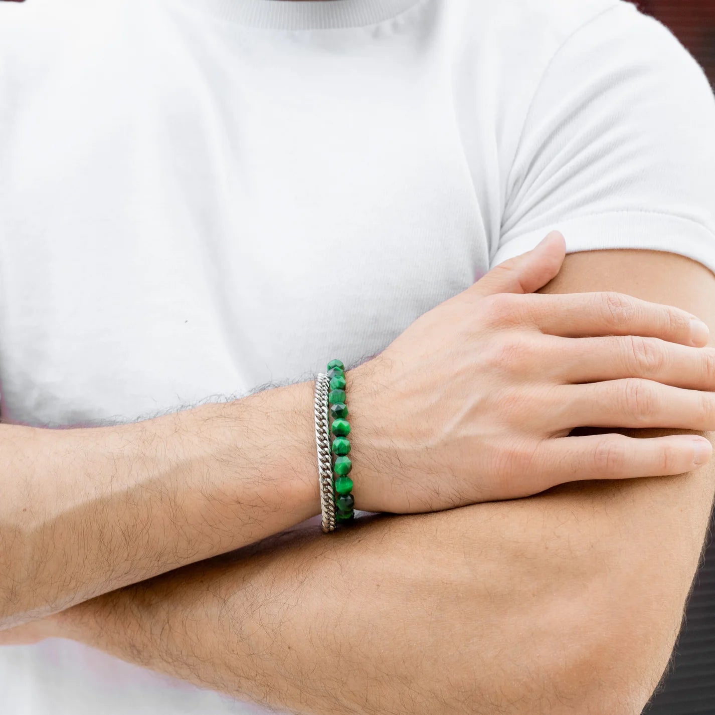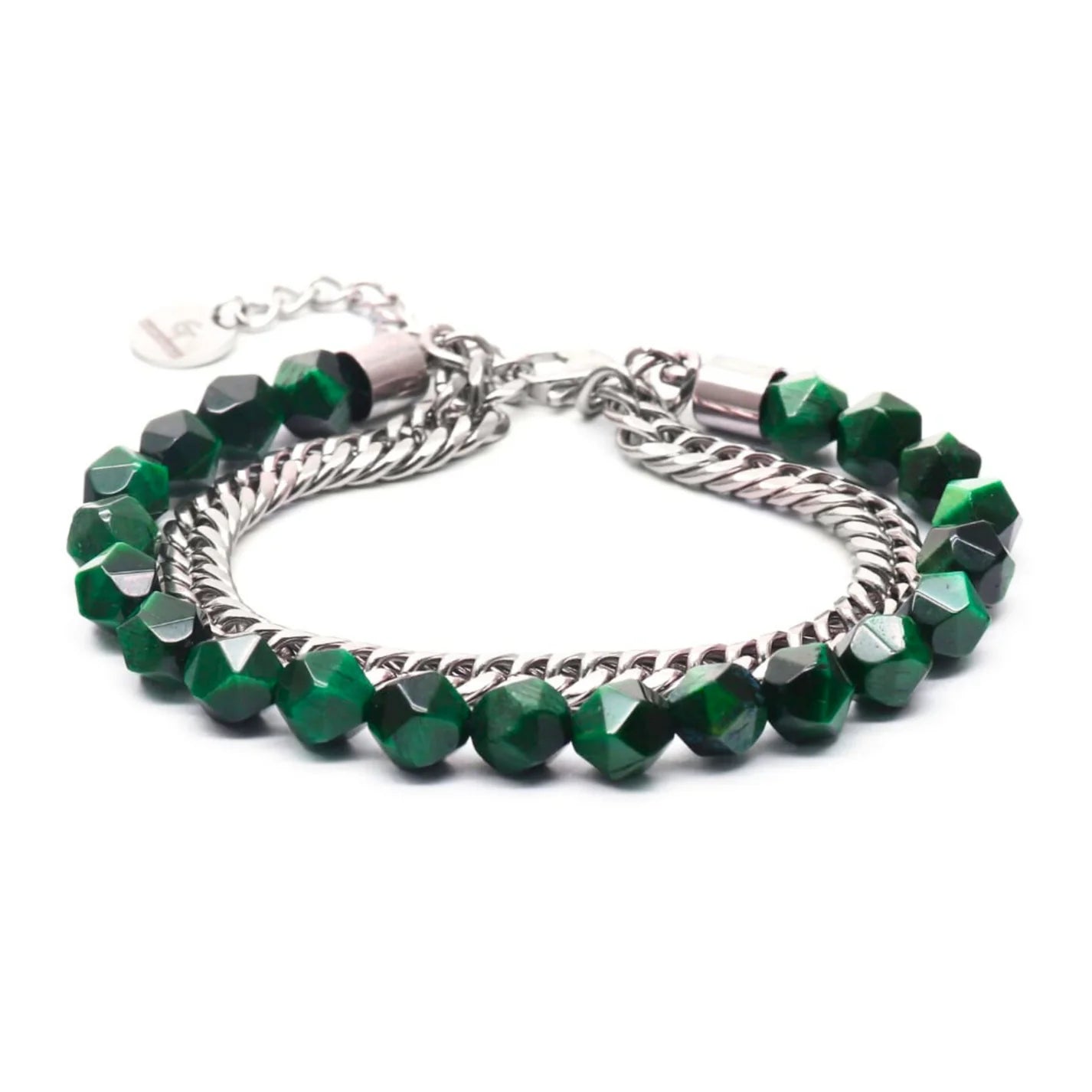 GT collection - moška fasetirana zapestnica iz zelenega tigrovega očesa