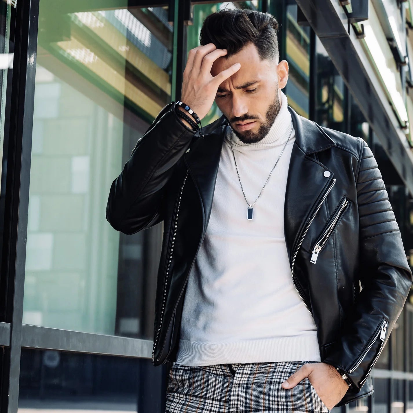 🔷 MOŠKA OGRLICA S PRAVOKOTNIM OBESKOM IZ ČRNEGA ONIKSA – KOLEKCIJA GT