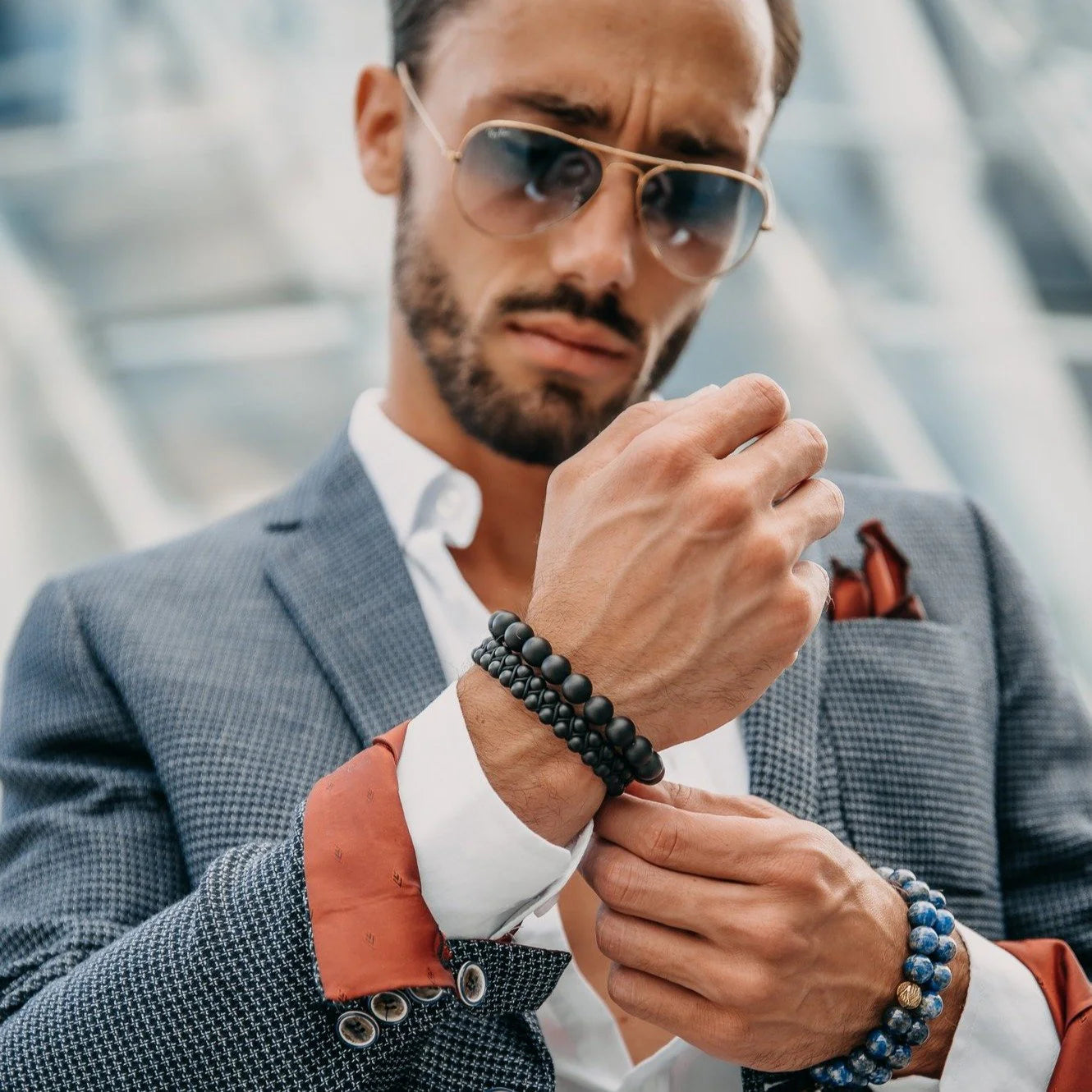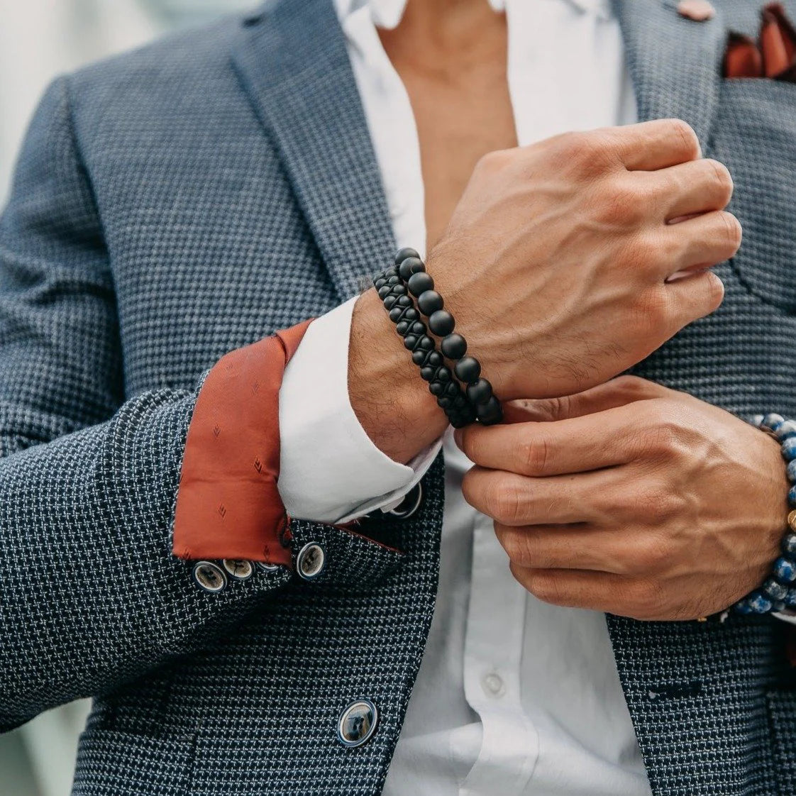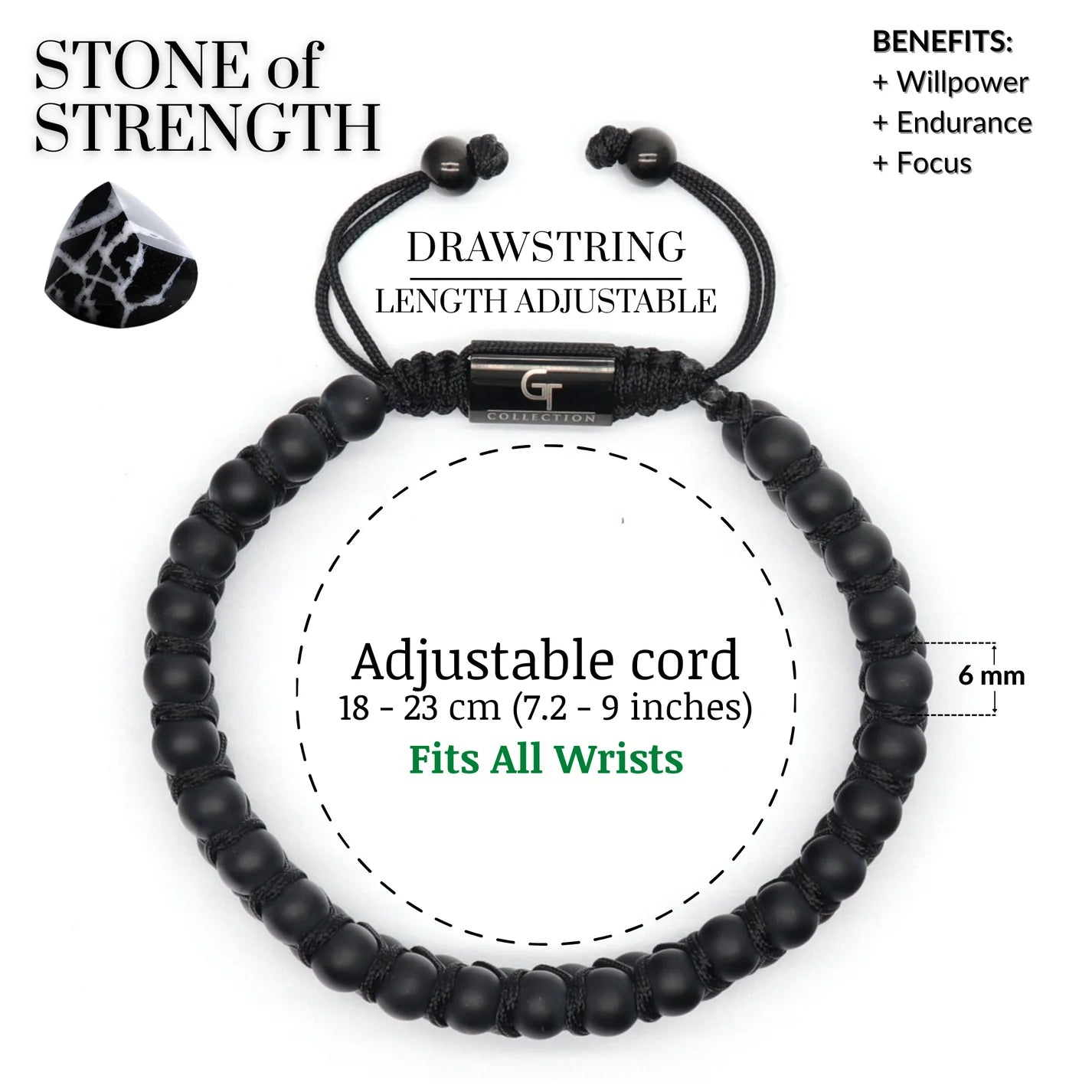 Moške zapestnice iz kolekcije GT so ročno izdelane iz certificiranih naravnih dragih kamnov in dvojnih 6 mm kroglic, kar ustvarja čudovito in edinstveno umetnino, ki jo lahko nosite še dolga leta.