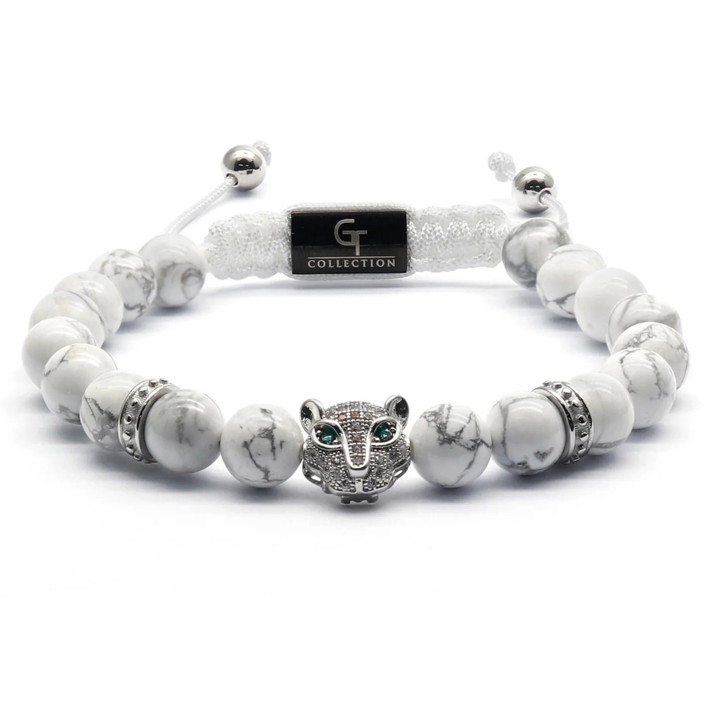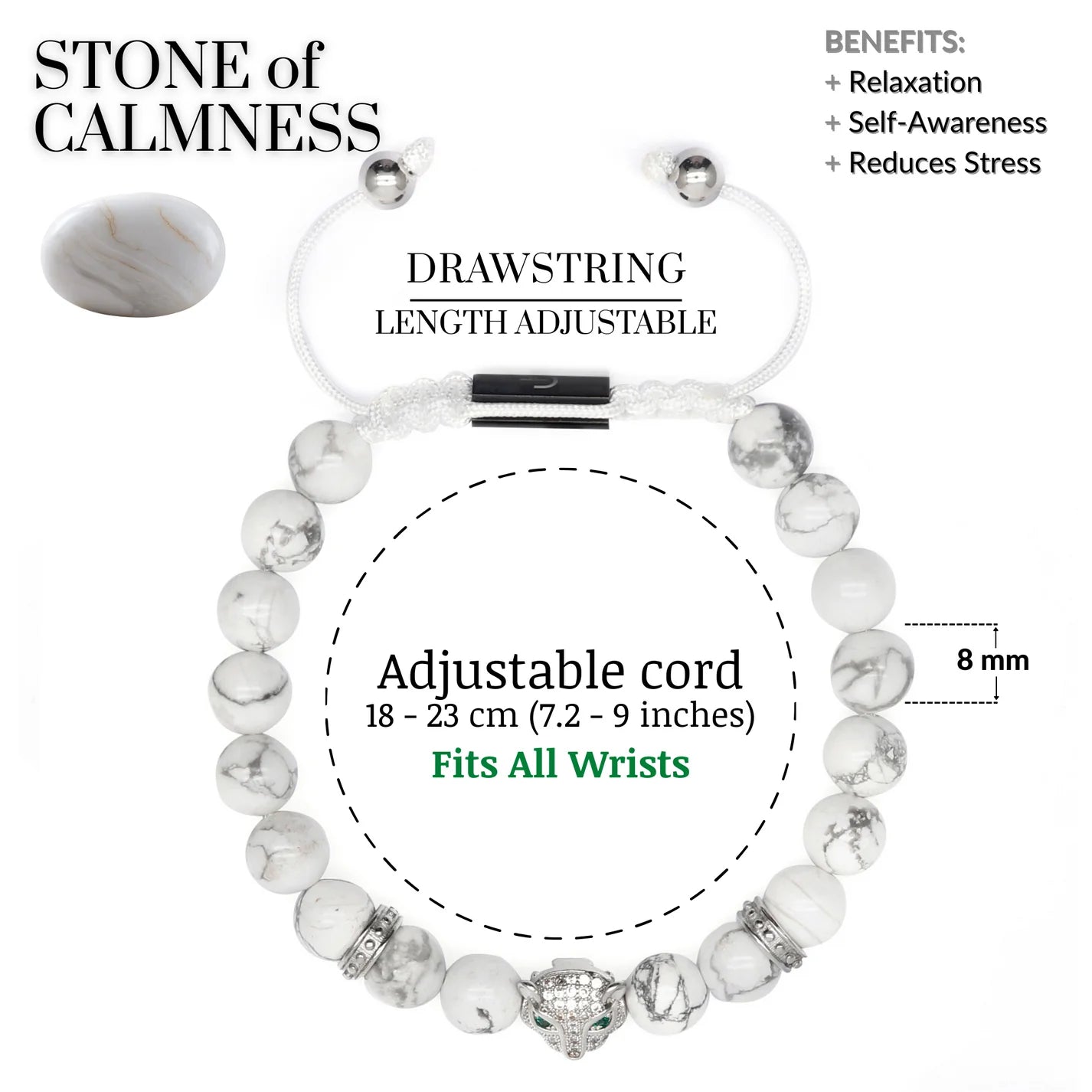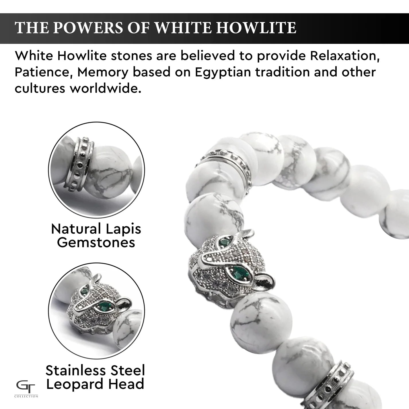 Howlit in simbolika leoparda ponujata kombinacijo sprostitve in moči. Ta zapestnica deluje kot energijski talisman, ki pomaga pri obnavljanju notranje energije, iskanju življenjskega ravnovesja, spodbujanju ljubezni in uravnavanju čaker.