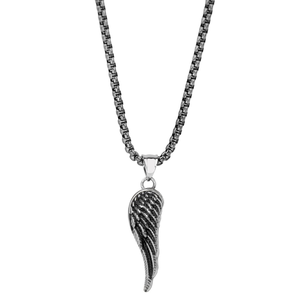 Izdelana iz visokokakovostnega nerjavečega jekla, ta ogrlica ima eleganten obesek v obliki angelskega krila, ki meri 2×3.5 cm. Dolžina ogrlice je 60 cm in je opremljena z jastogovo zaponko za enostavno uporabo.
