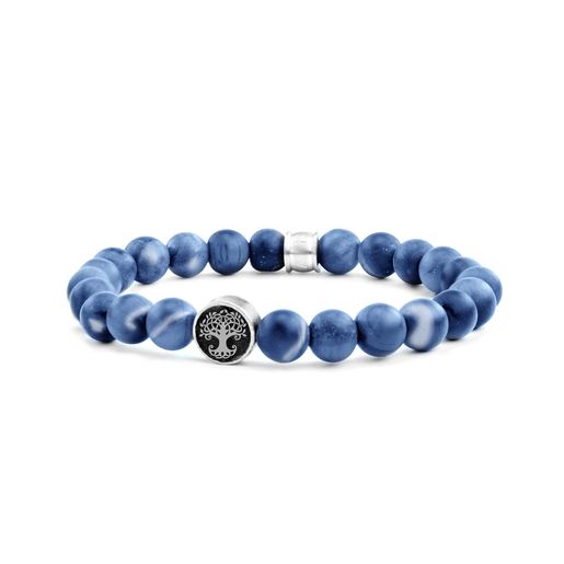 Eleganten modni dodatek z 8 mm kroglicami iz matiranega sodalita v modri barvi, dopolnjen z jeklenim obeskom Drevo življenja. Idealna izbira za sodoben in samozavesten stil.