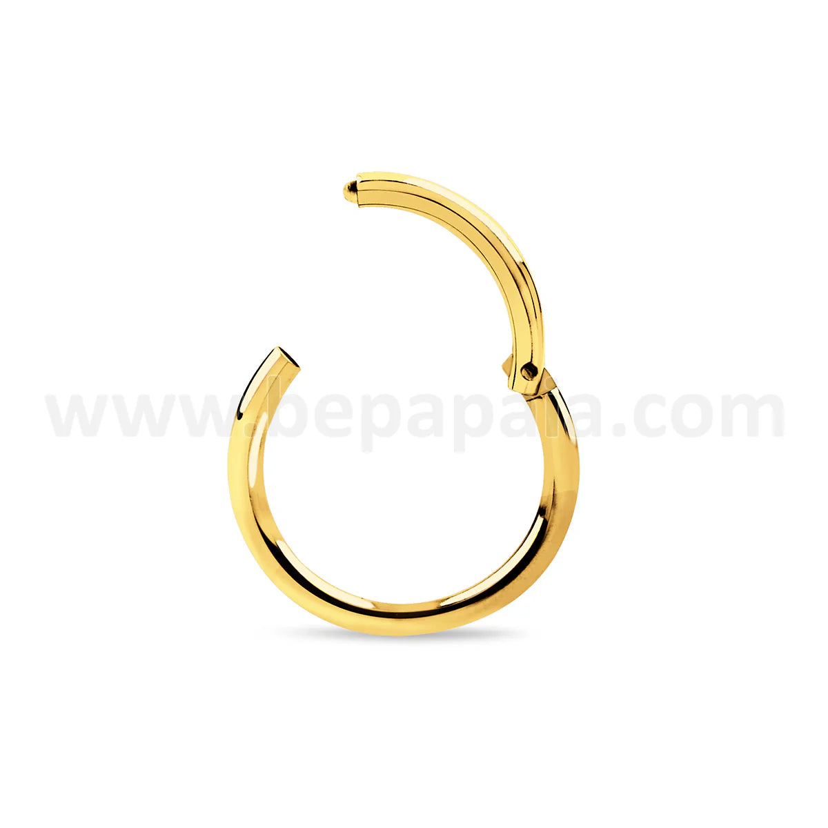 Zlati obroček s tečajem (hinged segment ring), na voljo v velikostih 0,8 × 8 mm in 0,8 × 10 mm.