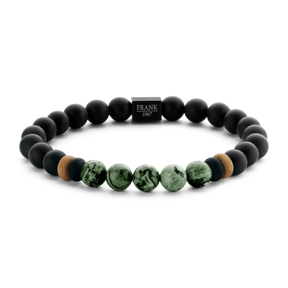 Moč in slog v enem dodatku Zasnovana za sodobnega moškega, ki ceni moč in stil, ta zapestnica združuje izrazite teksture z elegantno in samozavestno obliko. Prefinjena kombinacija tonov in materialov ustvarja popolno ravnovesje med eleganco in drznostjo. Več kot le modni dodatek – zapestnica, ki vsaki opravi doda karakter in samozavest.