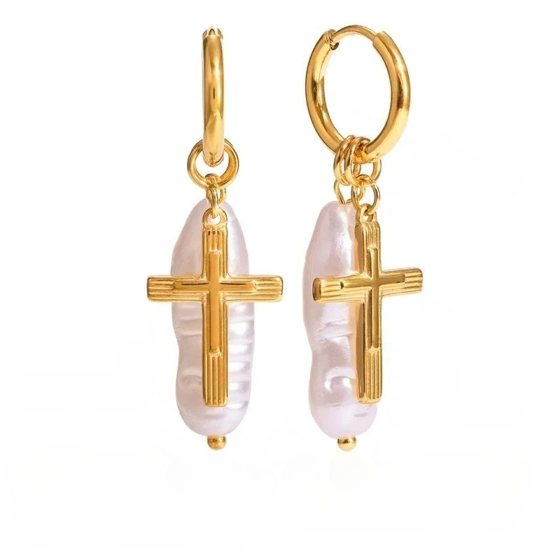 Uhani s križem in biserom
