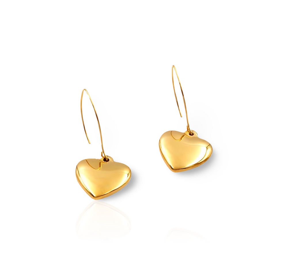 Te elegantne uhane iz nerjavečega jekla krasijo obeski v obliki srca, ki simbolizirajo ljubezen in nežnost. Brez prisotnosti niklja so uhani hipoalergeni, zato so primerni tudi za tiste z občutljivo kožo. Približna dolžina vsakega uhanca je 4 cm, kar zagotavlja diskreten, a opazen videz. Obesek v širino meri 2 cm, kar poudarja njegovo srčasto obliko brez da bi bil prevelik. Poliran finiš nerjavečega jekla daje tem uhanom sijaj in odsev, ki ujame oči, obenem pa obljublja trajnost in odpornost proti koroziji. Preprosti, a vendar sofisticirani, ti uhani so odlična izbira za vsakodnevno nošenje ali posebne priložnosti.