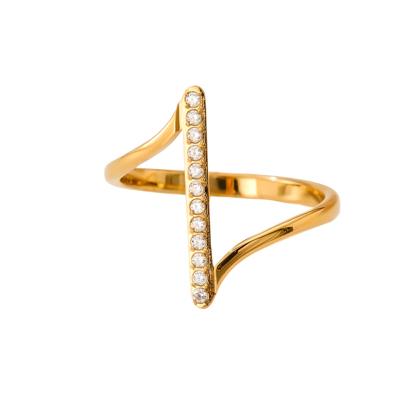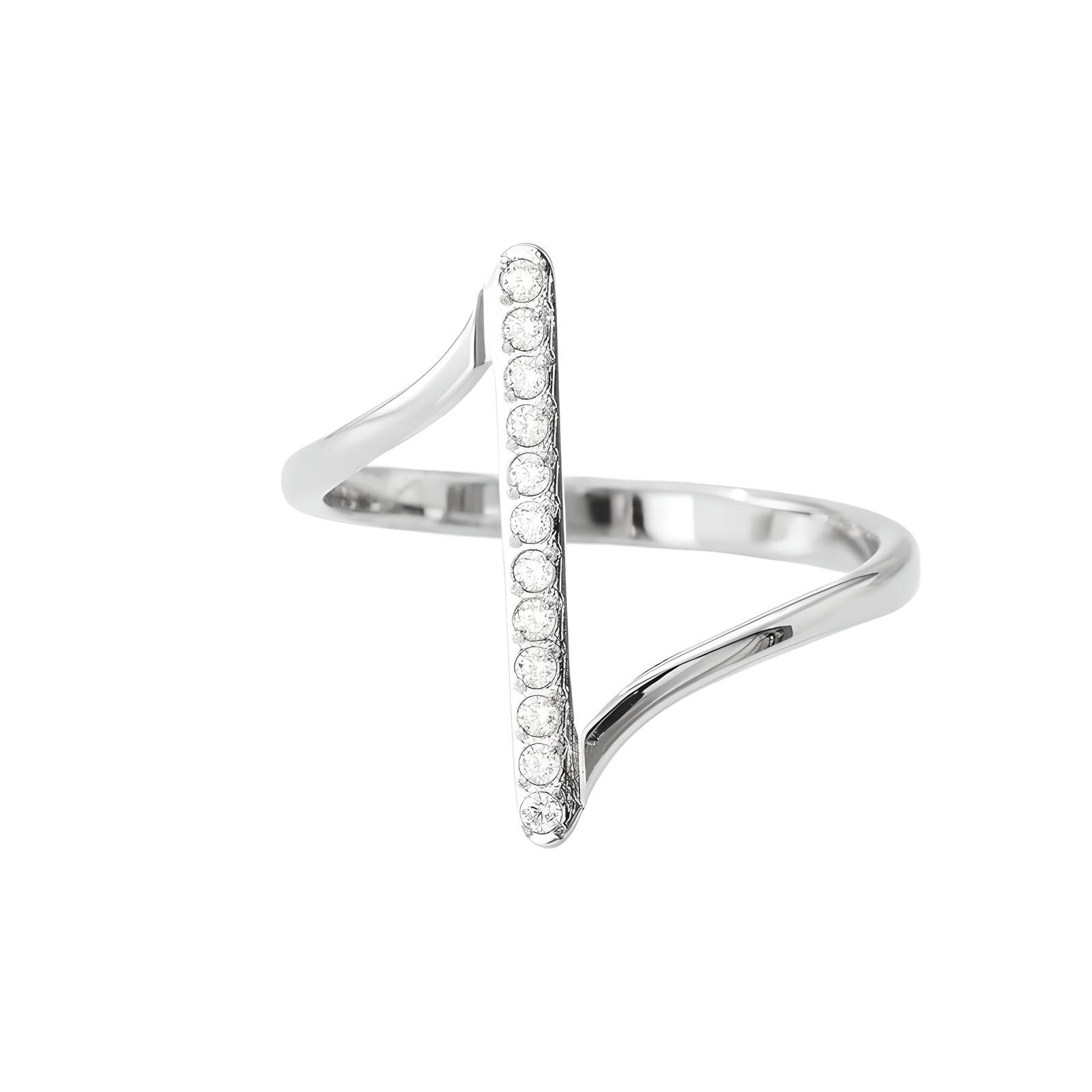 Moderen prstan iz nerjavečega jekla z elegantno linijo cirkonov. Asimetrična oblika doda pridih drznosti, bleščeči detajli pa poskrbijo za prefinjen sijaj v vsakem pogledu.