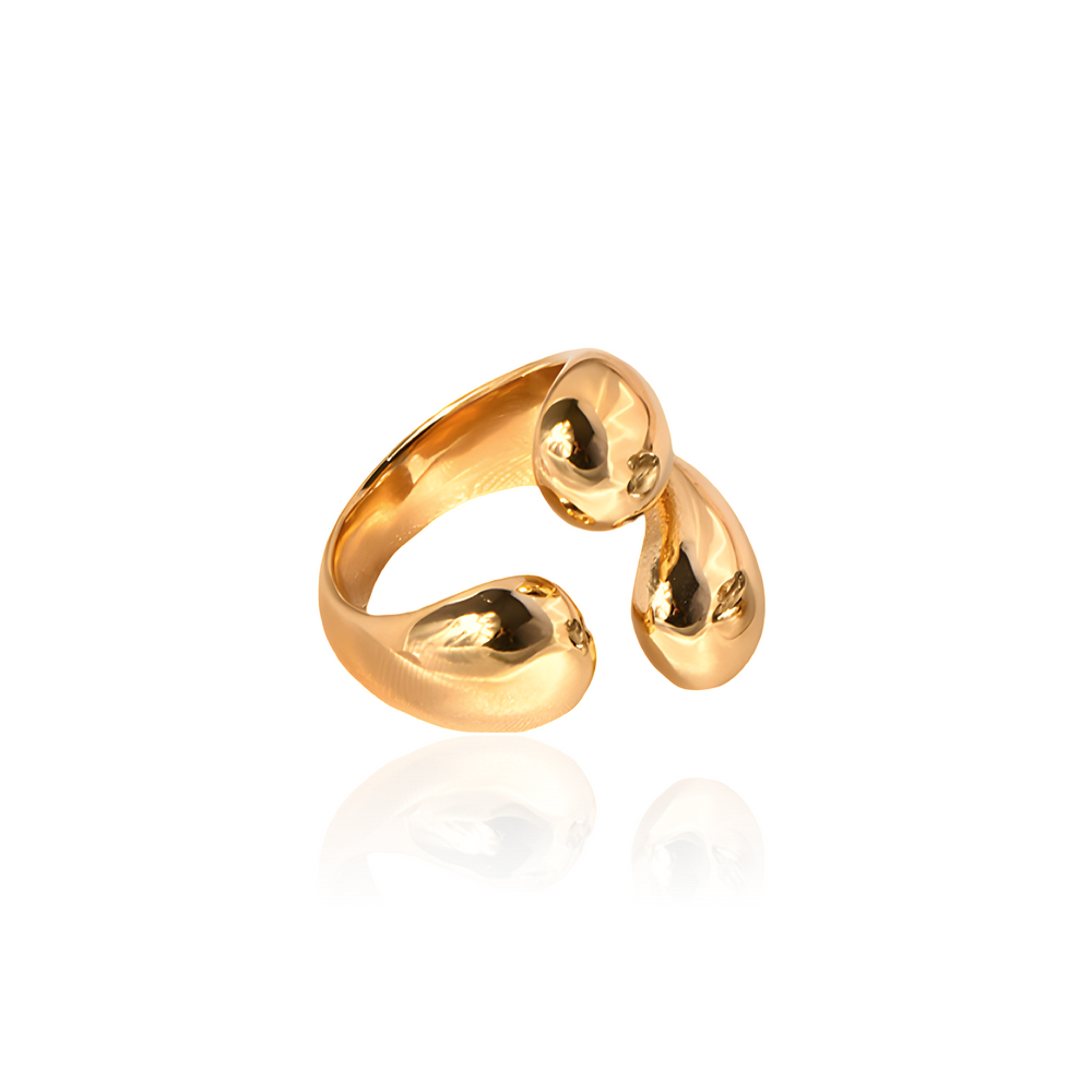Razkošen in izstopajoč, prstan iz nerjavečega jekla predstavlja popolno združitev elegance in edinstvenega dizajna. Prstan krasi tri izjemne "chanky" glave, ki dodajajo volumen in karakter, medtem ko je njegov zgornji del prefinjeno odprt. Na voljo v srebrni in zlati barvi.